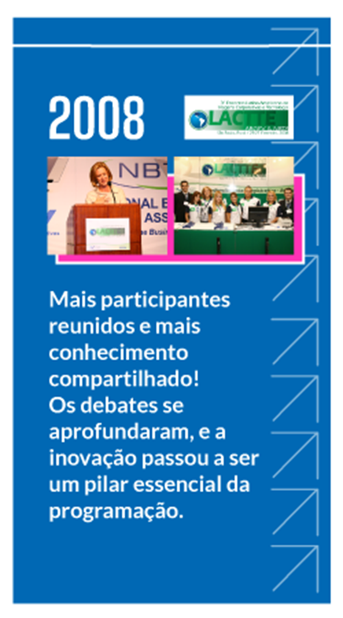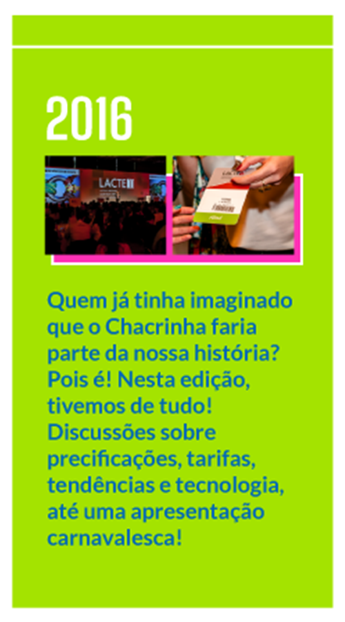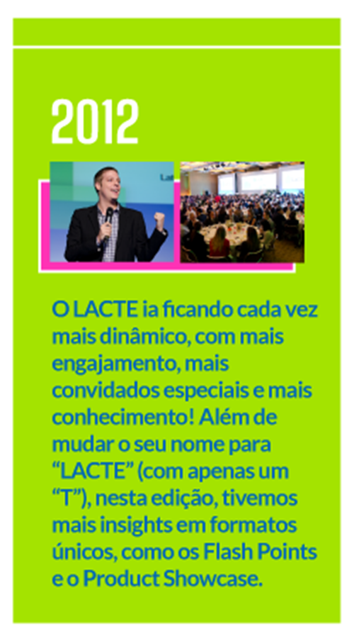 Sempre em evolução, o LACTE antecipa desafios e oportunidades, proporcionando insights e soluções que moldam o futuro da indústria. Com uma programação diversificada, experiências imersivas e um ambiente dinâmico de networking, o evento fortalece a competitividade do setor, impulsiona novos modelos de negócios e inspira líderes a construírem legados transformadores
